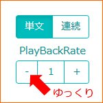 右上の "PlayBackRate" で再生速度の調節が可能になりました。